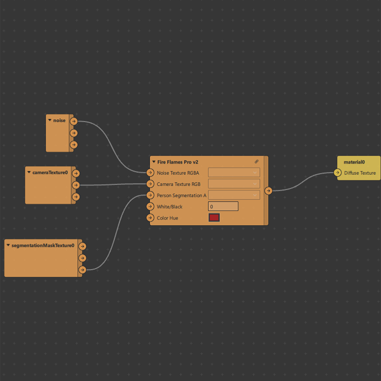 Link noise texture with RGBA output, cameraTexture with RGB output, and segmentationMask with A output.